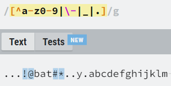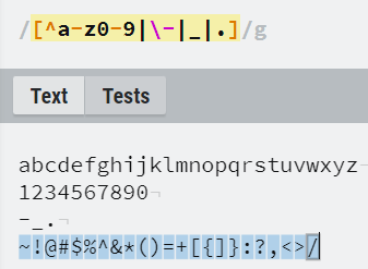 여기서 더 짧게 쓰고 싶다면 "a-z0-9"대신 "\w"를 써주어 "/[^\w|\-|_|.]/g" 이렇게 쓰기도 하는데