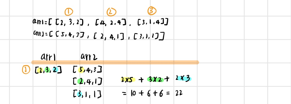reduce안에 acc+ cur*arr2[idx][j] 쓴 이유는 아래 이미지를 보시면 아실 것 같습니다.