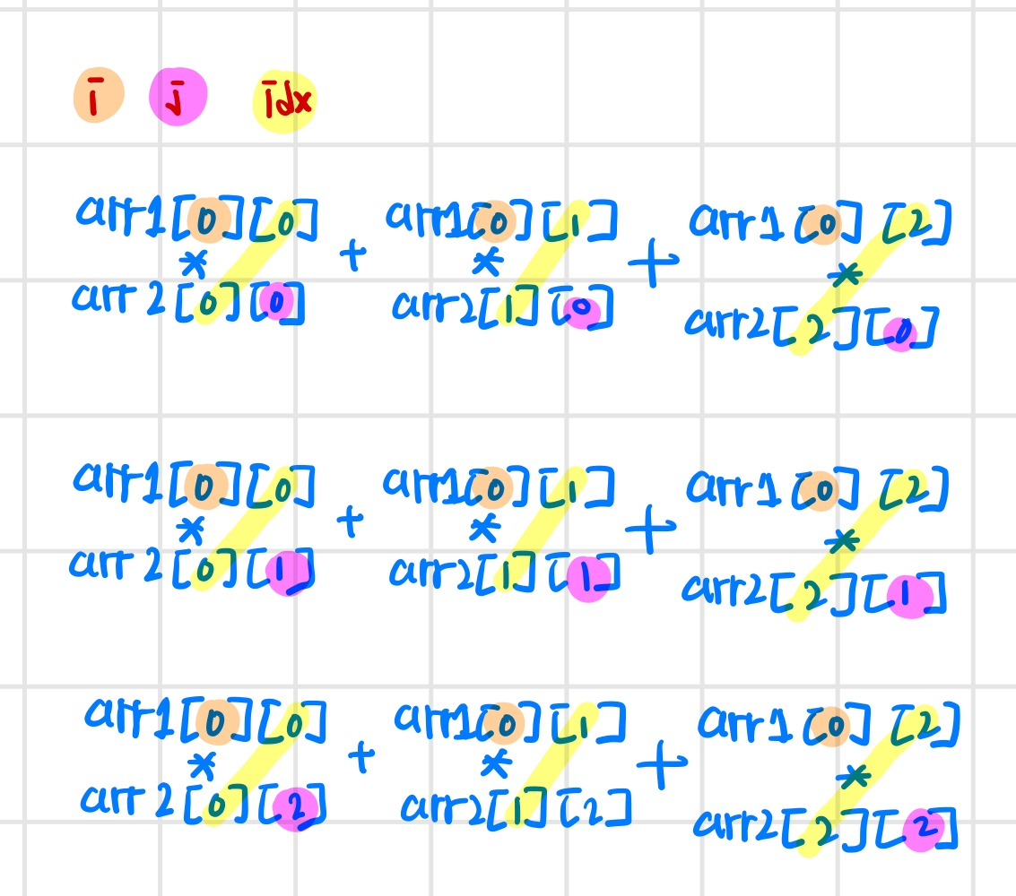 세 번째는 반복문에서는 arr1[][여기], arr2[여기][]