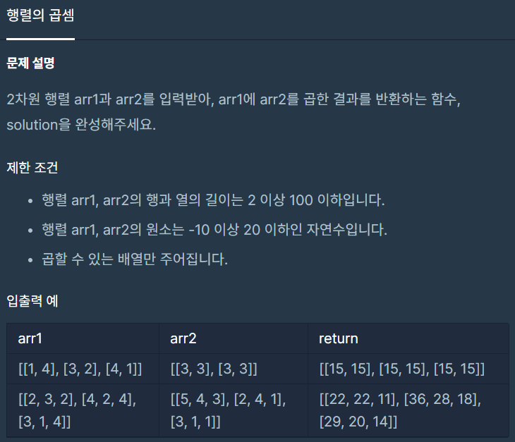 여기까지 프로그래머스 행렬의 곱셈 해결방안에 대해 설명해보았습니다.
