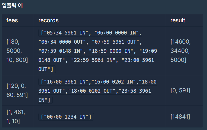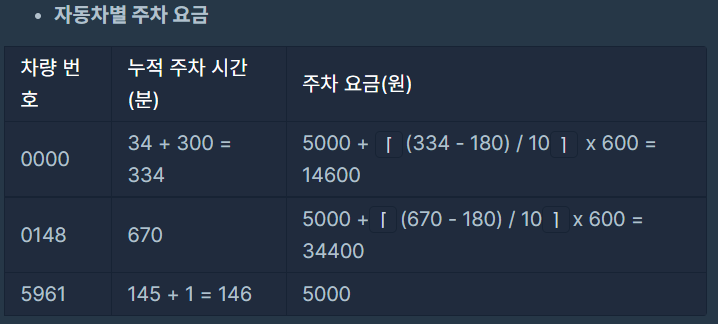 - result = [0000의 주차요금, 0148의 주차요금, 5961 주차요금]