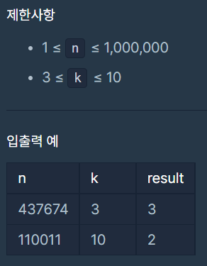 숫자n을 k진수로 바꿀 때는 toSting()을 사용해주었습니다.