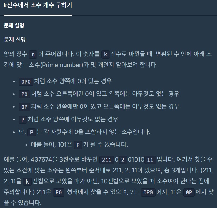 [프로그래머스] k진수에서 소수 개수 구하기 본문