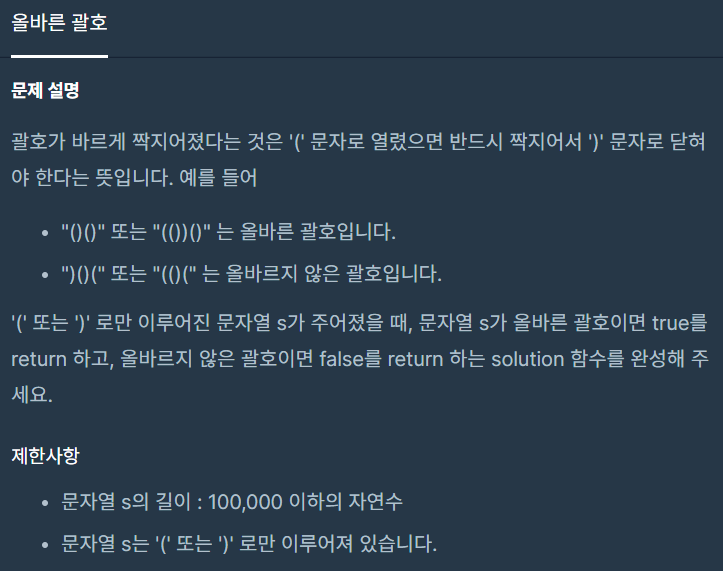 [프로그래머스] 올바른 괄호 본문
