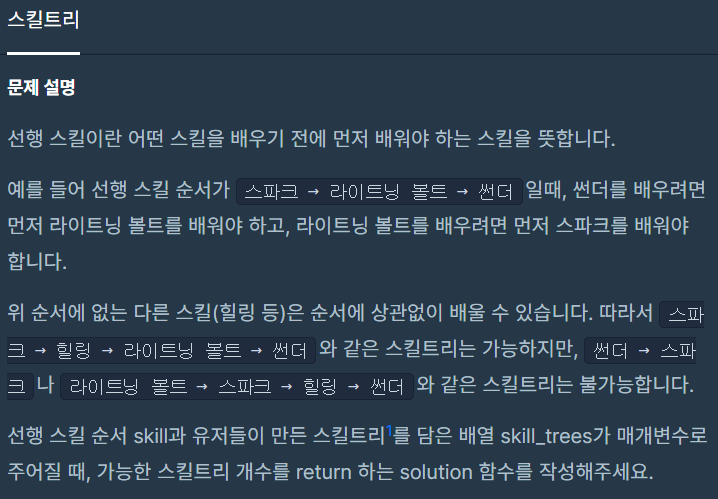 여기까지 프로그래머스 스킬트리 해결방안에 대해 설명해보았습니다.