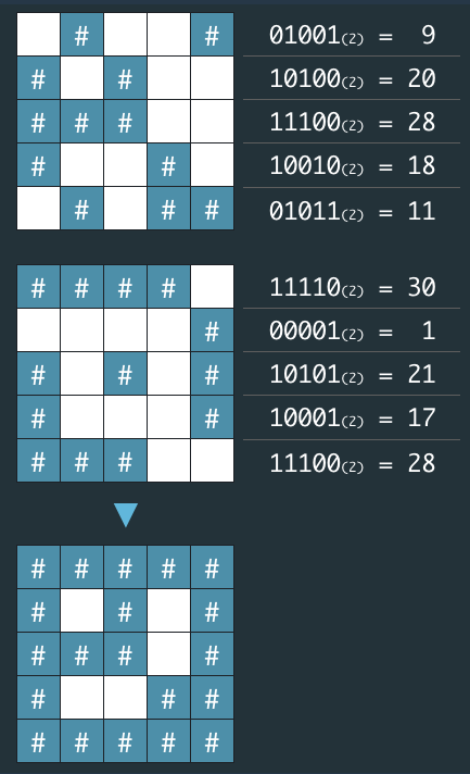 arr1Bs[i][j] === '#' || arr2Bs[i][j] === '#' ? arr1Bs[i][j] = '#' : arr1Bs[i][j] = ' ';