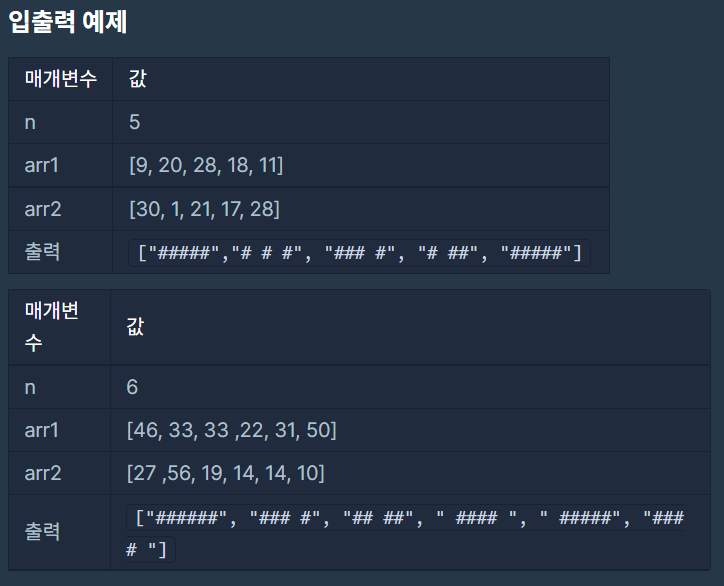 // arr1, arr2의 숫자를 2진법으로 만들고 #,공백으로 교체하기
