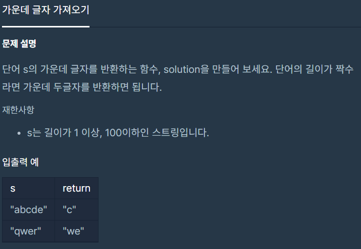 여기까지 프로그래머스 가운데 글자 가져오기 해결방안에 대해 설명해보았습니다.