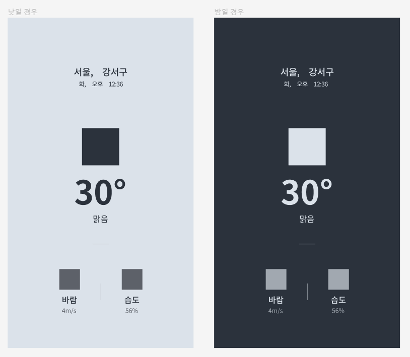 이렇게 낮일 때 밤일 때 css를 다르게 적용해보려고 합니다.