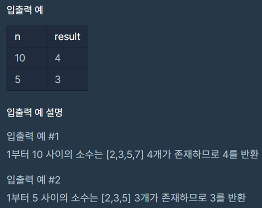 그래서 1~n 사이에 있는 소수의 개수를 반환하라 했지만 1은 소수가 아니기 때문에
