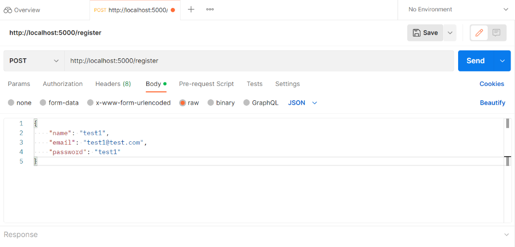 하지만 이렇게 작성하면 POST MAN으로 Register Router에 Request 보내면 오류가 납니다.