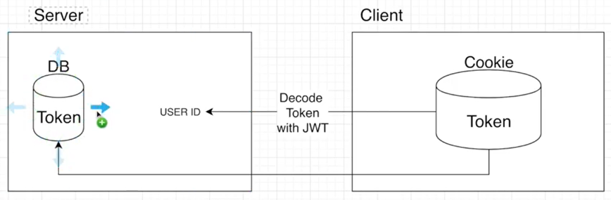 클라이언트에 쿠키에 담겨있는 토큰을 서버에 전달하면 서버쪽 토큰이 인코드 하면 User ID가 나옵니다.
