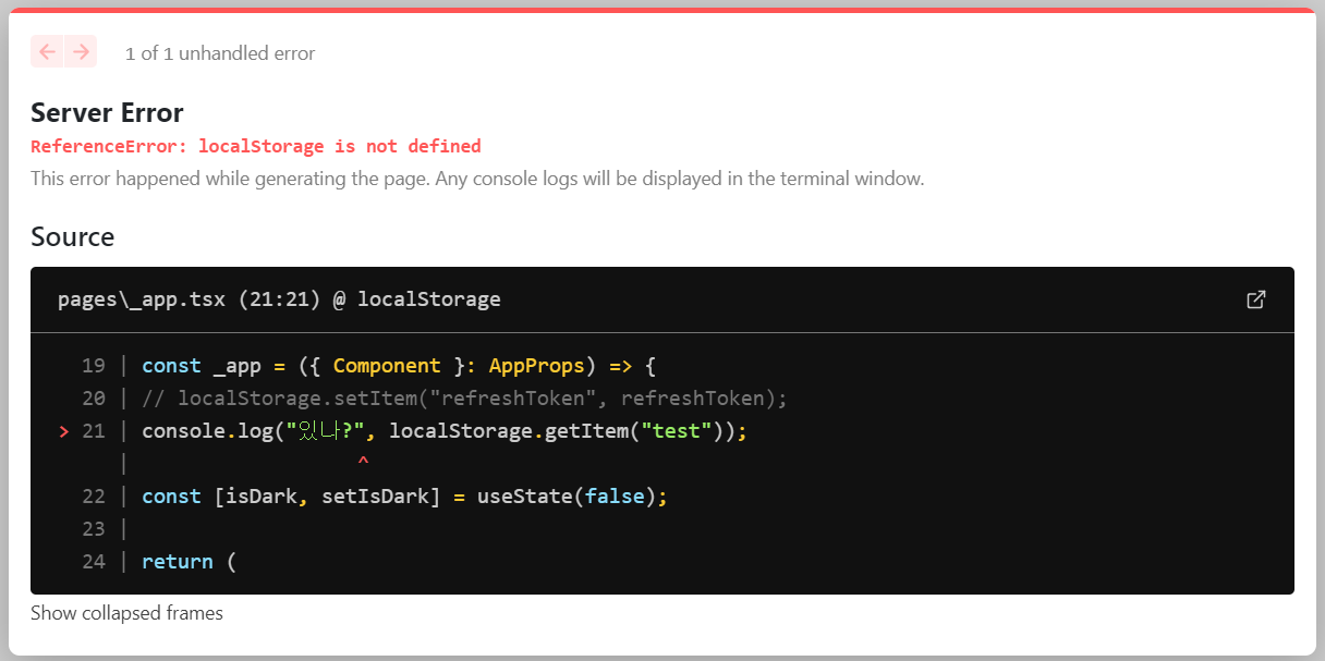 Next에서 localStorage 오류 해결