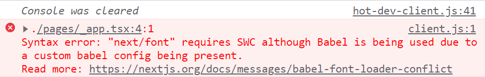 구문 오류: 사용자 지정 바벨 구성이 있기 때문에 바벨이 사용되고 있지만 "next/font"에는 SWC가 필요합니다.