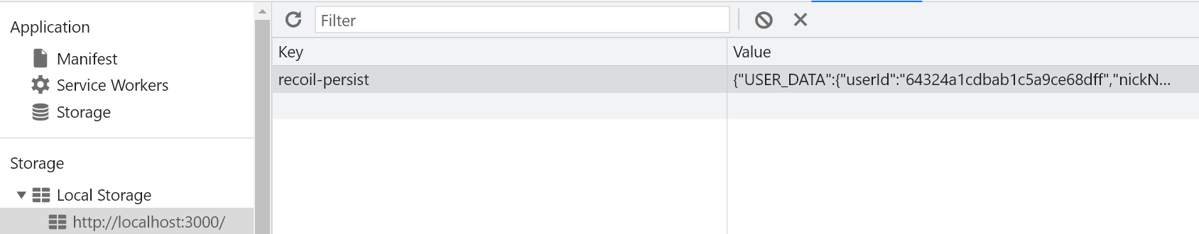 const { persistAtom } = recoilPersist(); // 페이지가 변경되더라도 상태관리를 유지하기 위해 사용된다.
