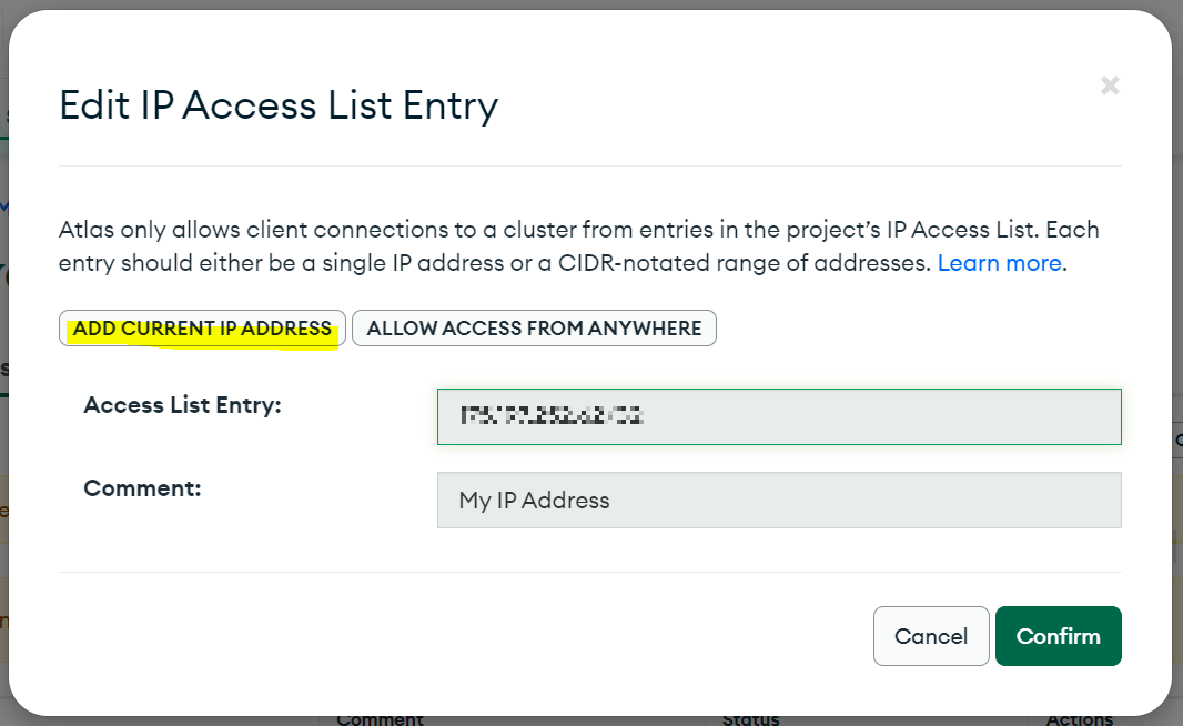 mongoDB에 접근 가능하도록 등록을 해주면 됩니다.