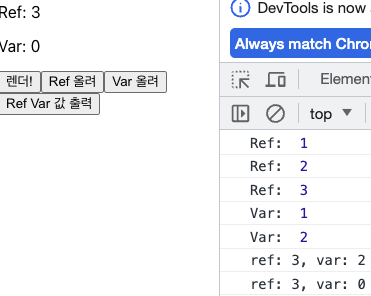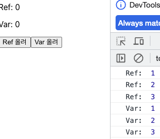 했더니 Ref는 변했는데 변수는 변하지 않았다.
