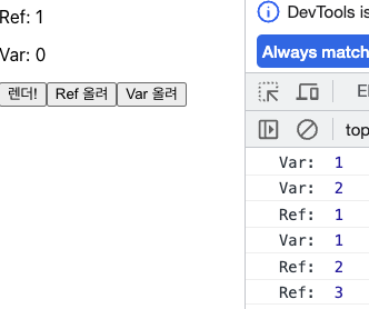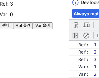 그래서 ref는 클릭할 때마다 1씩 증가하는 것을 볼 수 있지만