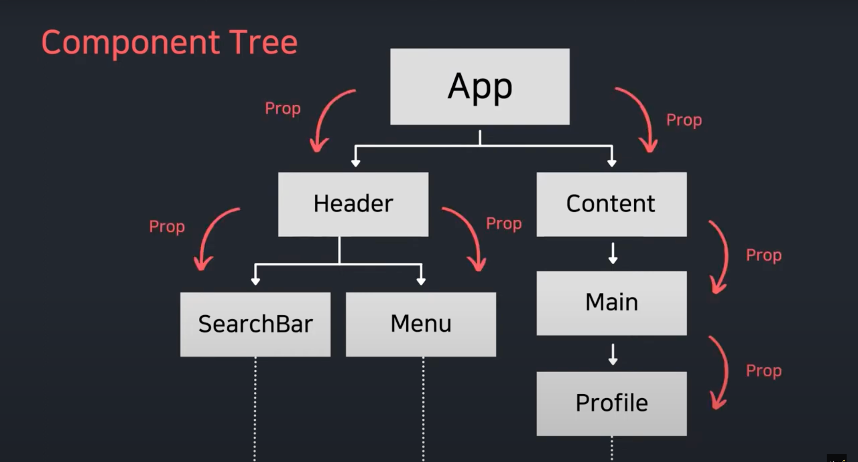 이런 전역적인 데이터를 props로 일일히 단계적으로 전달하게 된다면 개발자들이 너무 고통스러워 할 것이다.