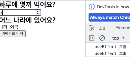 비행기를 타자를 클릭할 때 말고도 숫자를 증가시킬 때도 useEffect가 호출이 된다.