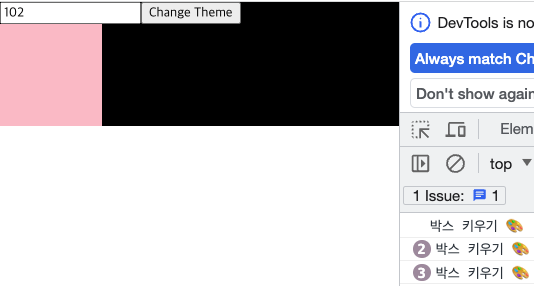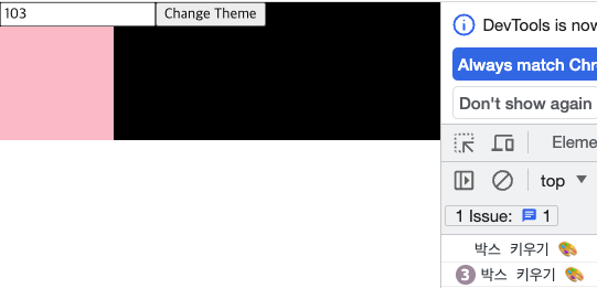 Change Theme을 클릭 시에도 useEffect가 실행된다.(박스 키우기 출력)