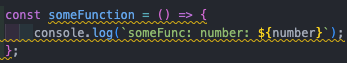 console.log(`someFunc: number: ${number}`);
