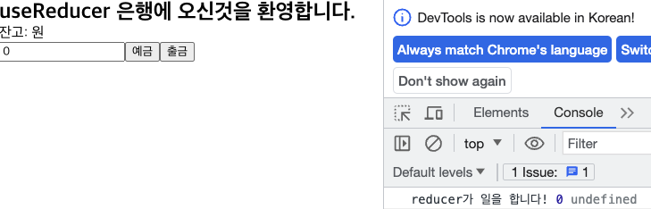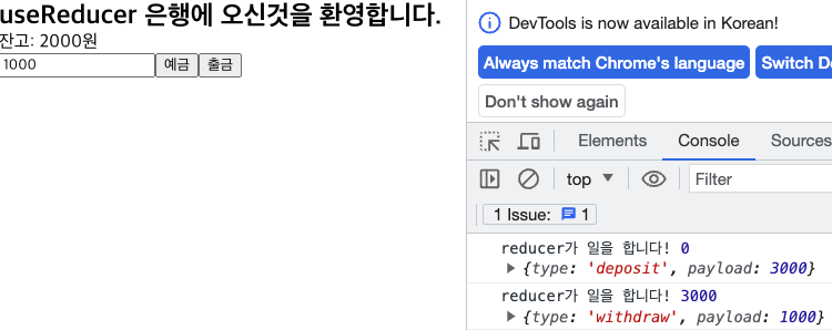 <h2>useReducer 은행에 오신것을 환영합니다.</h2>