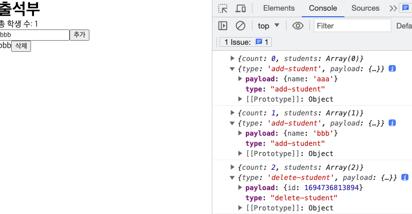 useReducer도 useState와 같이 state가 바뀔 때마다 컴포넌트를 렌더링이 되기 때문에 화면에 출력된다.