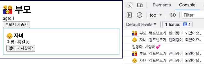 만약 자녀 나이 증가를 클릭하면 Child컴포넌트가 렌더링이 된다.