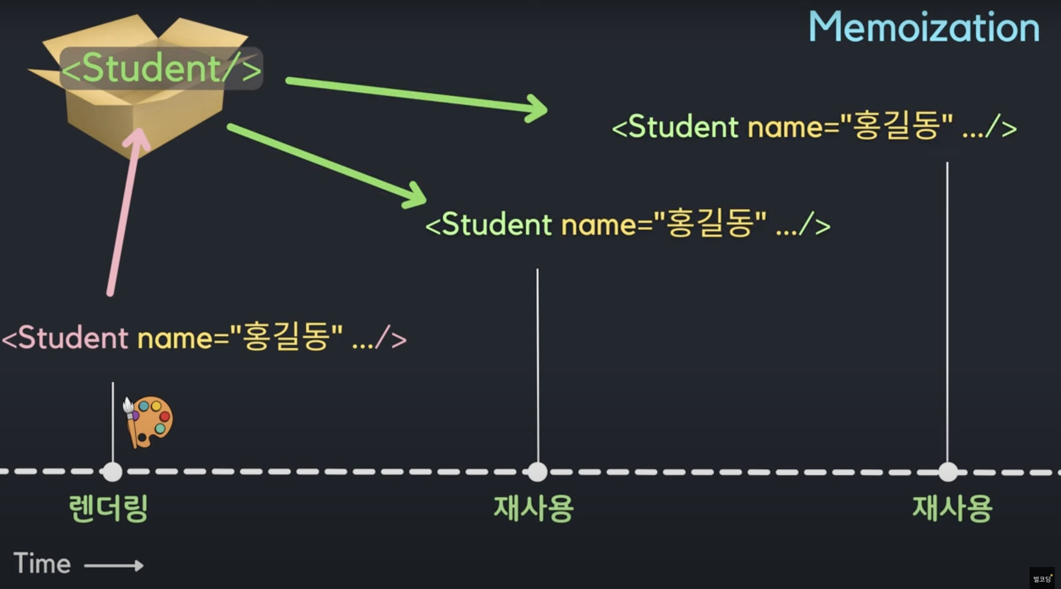 - 이미 렌더링 된 결과를 재사용하는 최적화된 컴포넌트가 되는 것이다.