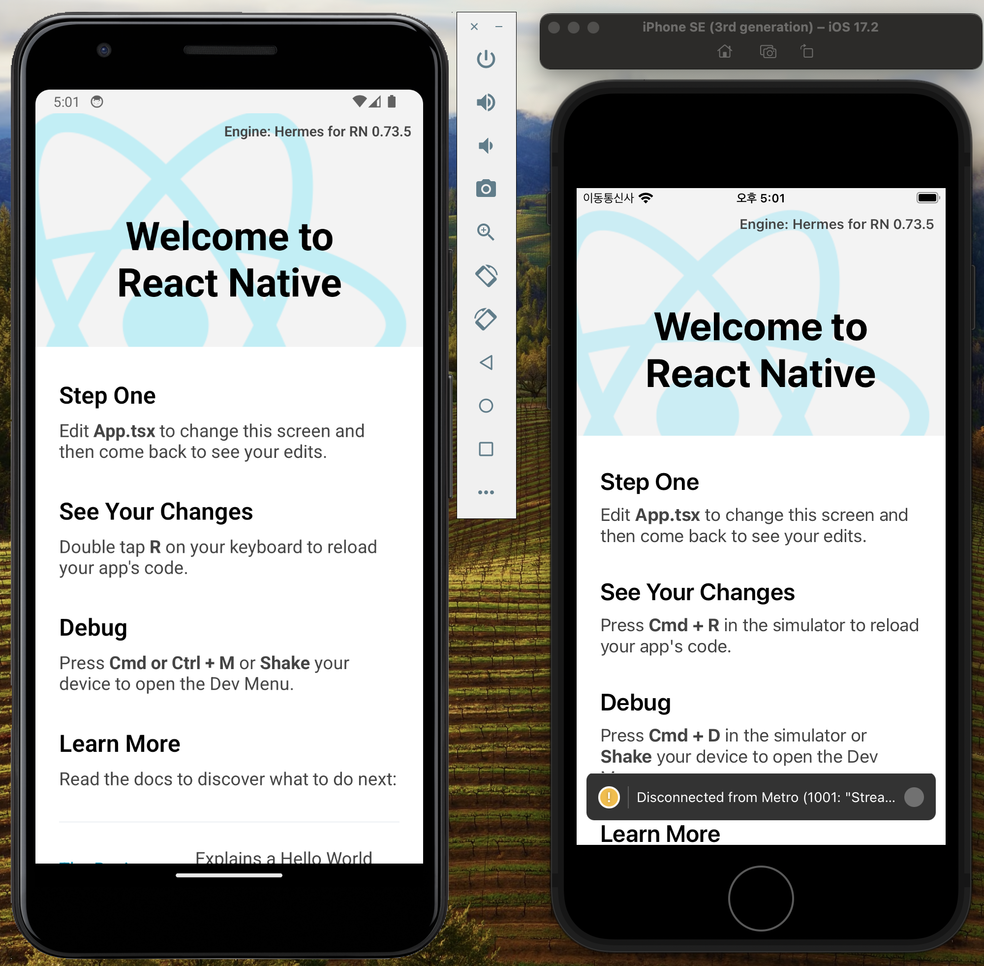 그리고 무조건 android는 시뮬레이터를 킨 상태에서 실행해야 됩니다!