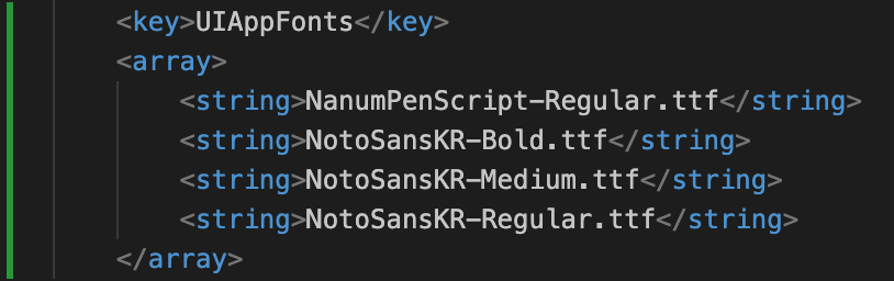 폴더작성할 때 적어두었지만 "사용하고 싶은 폰트.ttf"말고도 더 설정해야 되는 게 있습니다.