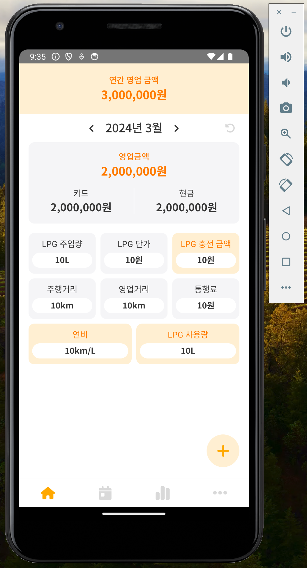 <RecordBox title="LPG 충전 금액" state={10} option="orange" />
