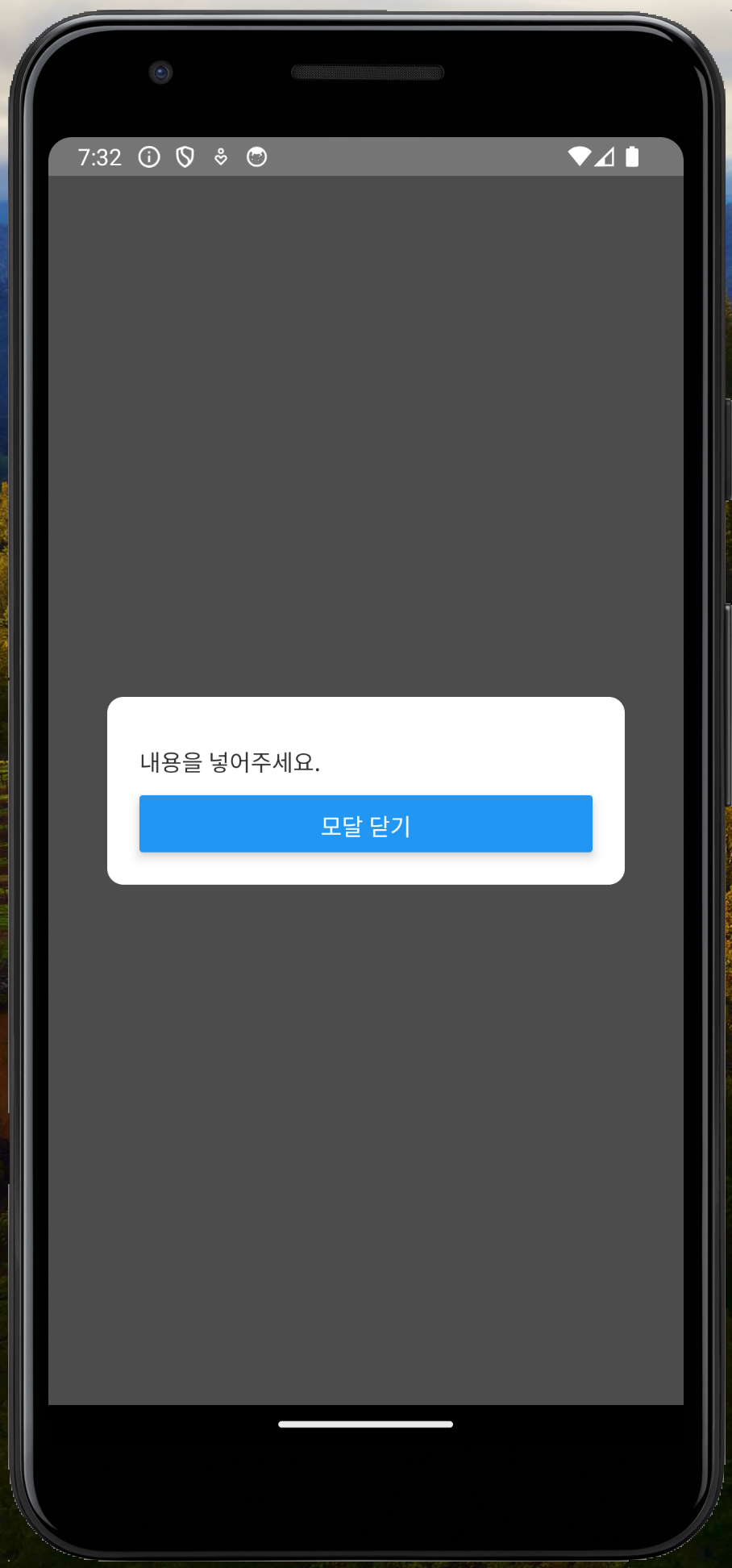 이런 화면을 구현하기 위해서는 Modal을 커스텀해주어야 됩니다.