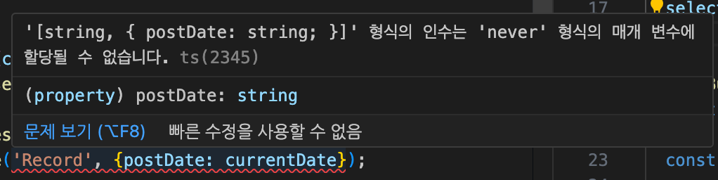 처음에는 오류가 발생하는 부분에 타입을 지정하면 되지 않을까?해서 타입을 지정했지만 실패했다.