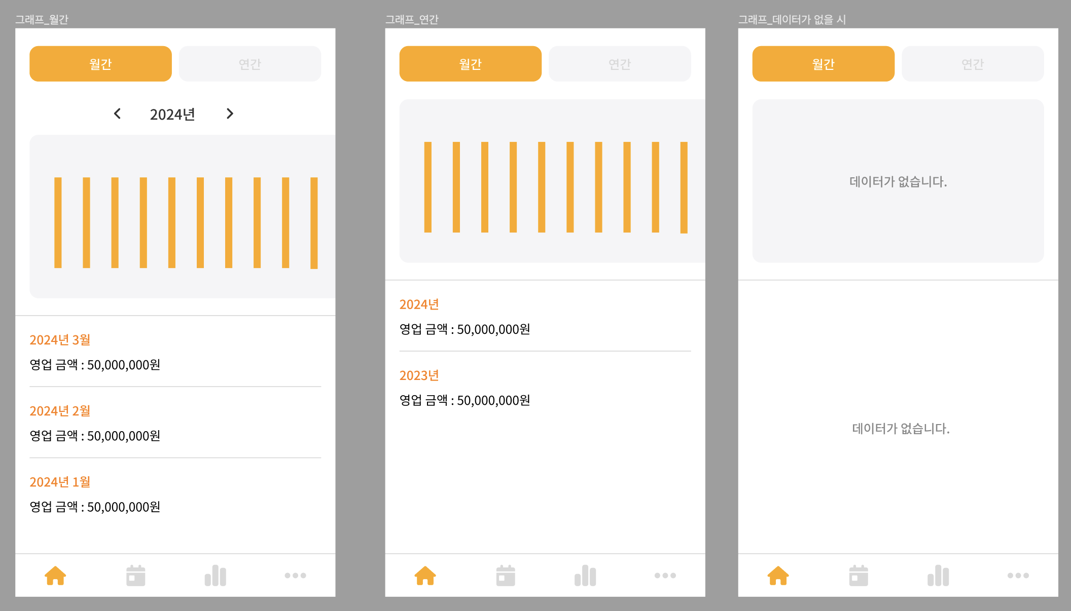 월간, 연간 둘 다 데이터가 없을 경우 차트, 리스트 컴포넌트에 "데이터가 없습니다". 출력