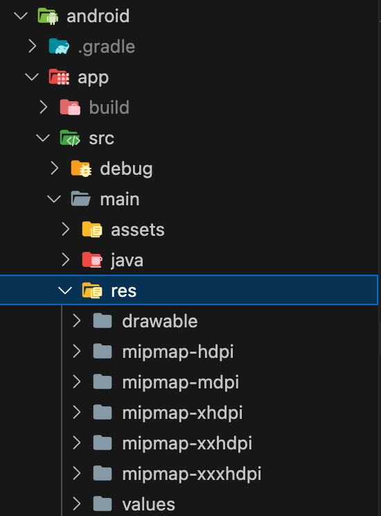 android/app/src/main/res에 들어가 보면 아래와 같은 되어있습니다.