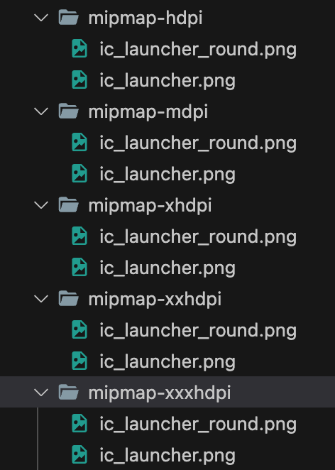 위에서 만든 로고들을 android/app/src/main/res에 들어가서 똑같은 적용 해주면 됩니다.