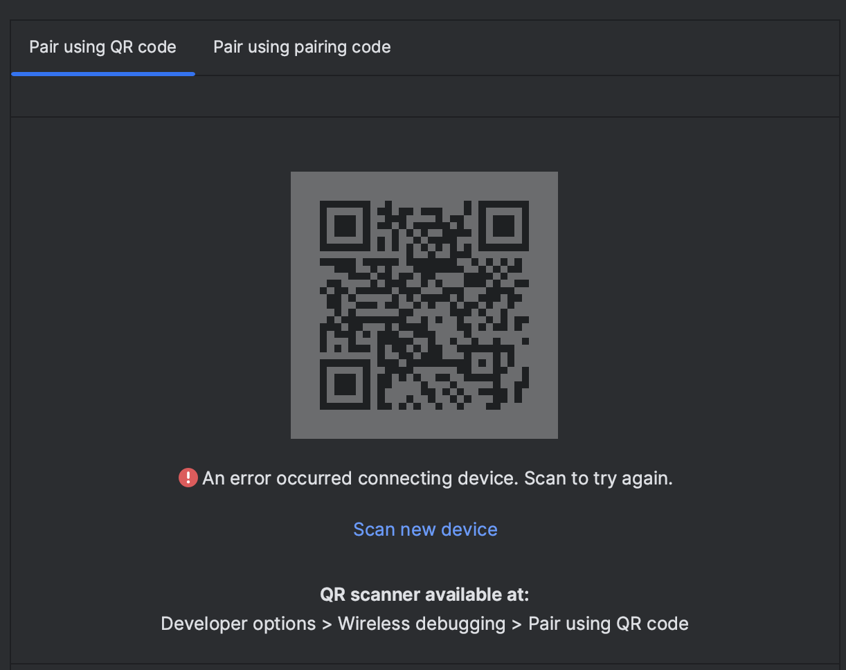 또 클릭하면 Pair new devices over Wi-Fi가 나옵니다.