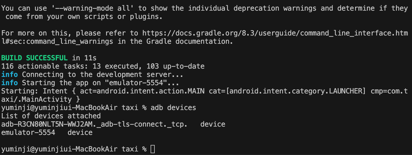 명령어으로 갤럭시 폰에 프로젝트 연결하기