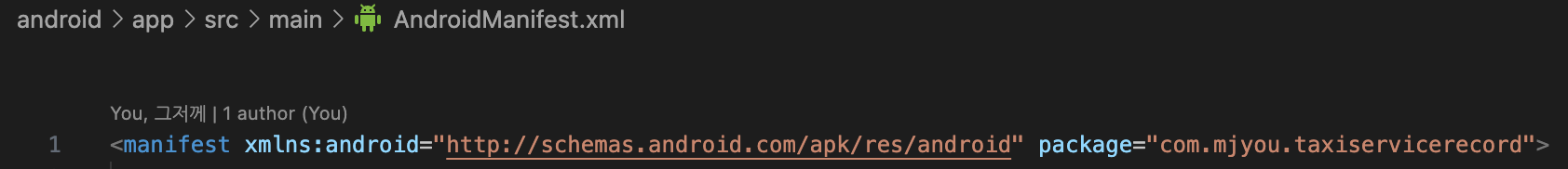 저는 com.mjyou.taxiservicerecord임으로 아래와 같이 폴더명을 수정해 주었습니다.