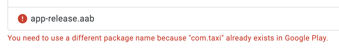 번역 : Google Play에 "com.taxi"가 이미 있으므로 다른 패키지 이름을 사용해야 합니다.